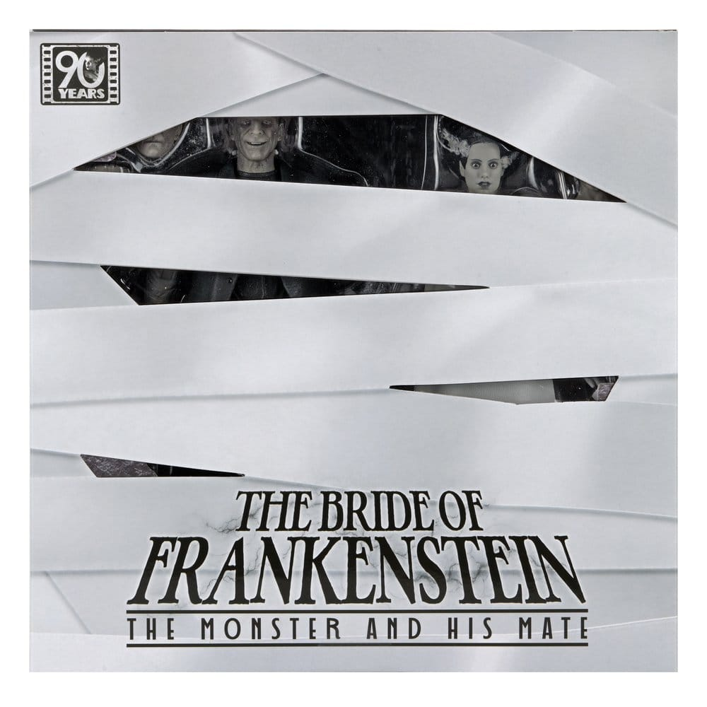 2-pack van twee 18cm hoge action figures van Frankenstein & His Mate in zwart wit uit de Universal Monsters Bride of Frankenstein 90th Anniversary serie.
