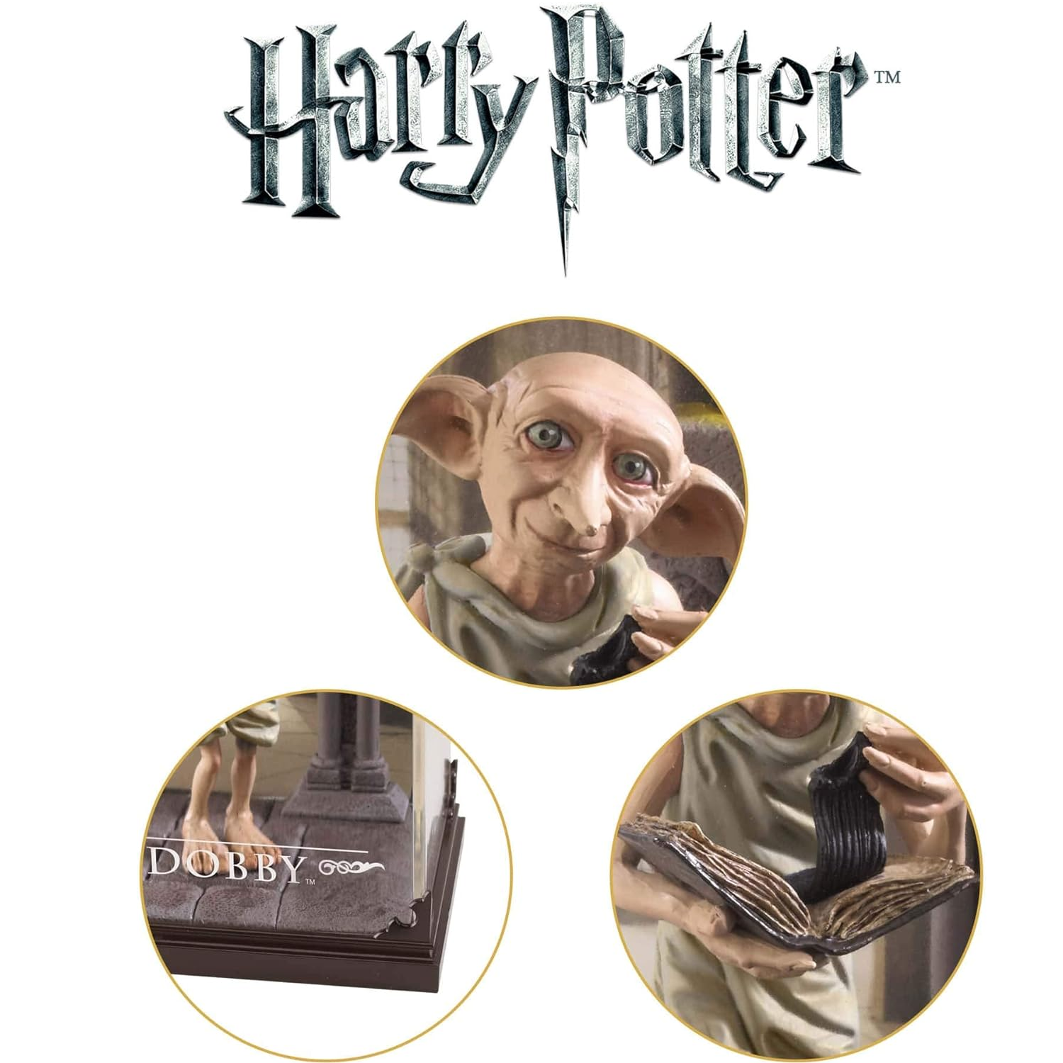 Dit mooie beeld van Dobby uit Harry Potter komt uit de Harry Potter Magical Creatures serie van the Noble Collection en is 19cm hoog. Het beeld zit in een diorama case maar kan hier ook uit gehaald worden.