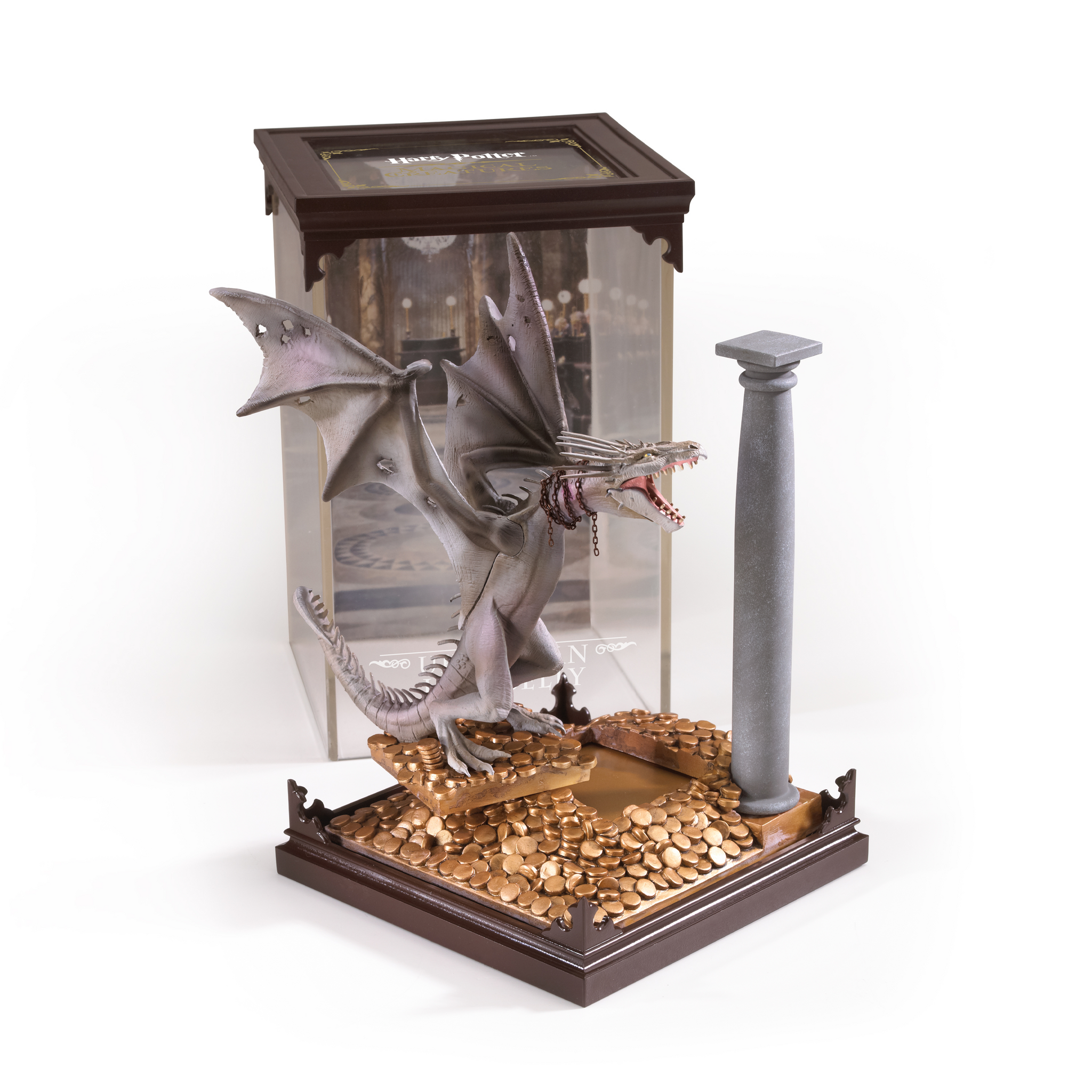 Dit mooie beeld van een Ukrainian Ironbelly uit Harry Potter komt uit de Harry Potter Magical Creatures serie van the Noble Collection en is 18,5cm hoog. Het beeld zit in een diorama case maar kan hier ook uit gehaald worden.