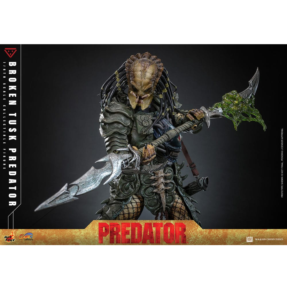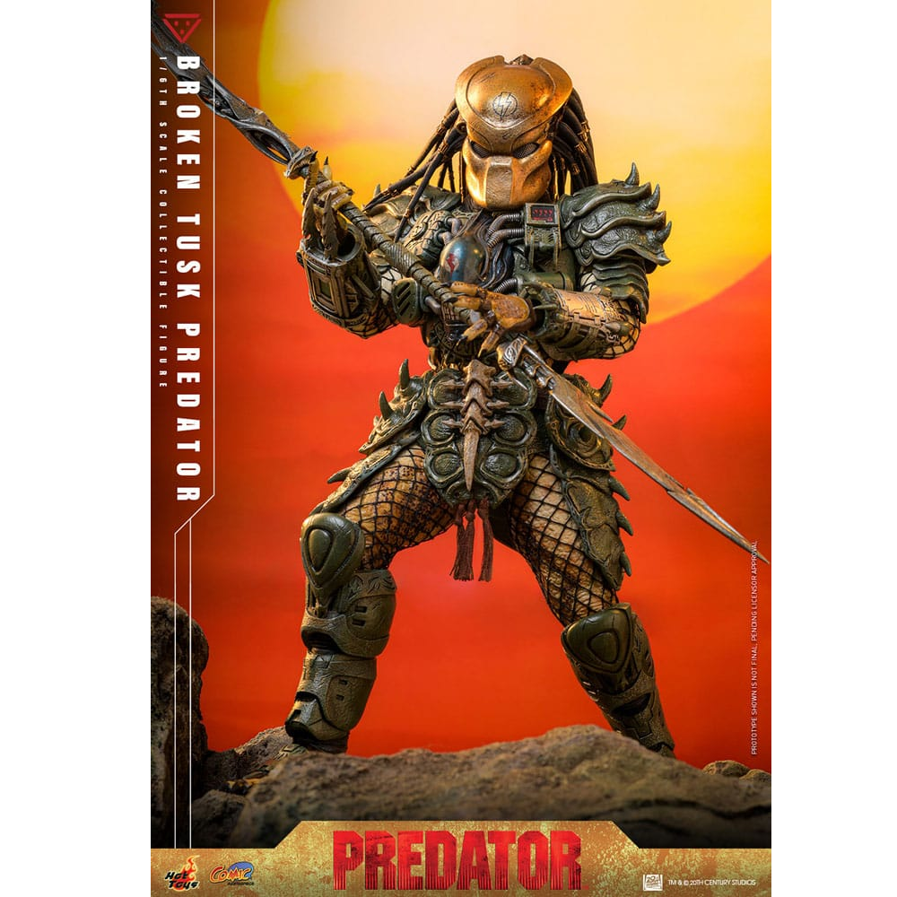 Deze Broken Tusk Predator action figure van komt uit de Movie Masterpiece serie van Hot Toys en is voorzien van extreem veel details. Broken Tusk Predator is 35cm hoog en komt met veel acccessoires. Zijn zwaard kan in twee delen worden gesplitst en hij beschikt over zijn iconische masker die je af kunt zetten. Er worden veel extra handen meegeleverd en een luxe standaard.
