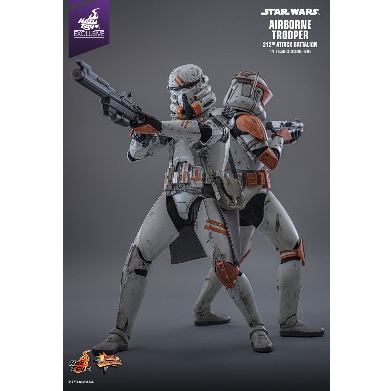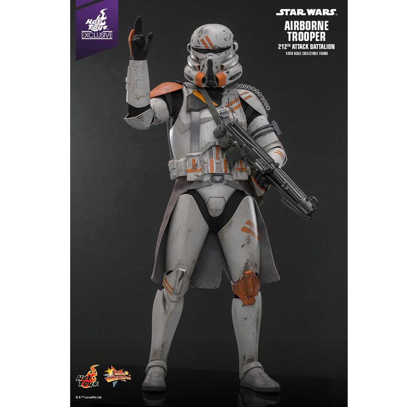 Deze Airborne Trooper (212th Attack Battalion) is een zeer gelimiteerde Hot Toys exclusive versie gebaseerd op Star Wars Episode III Revenge of the Sith. De Airborne Trooper komt met 7 verschillende handen, blaster rifle, long blaster rifle, tactical bag en speciale luxe standaard. Hij kan op meer dan 30 punten bewegen en zijn outfit is voorzien van extreem veel details en hoge kwaliteit materialen.