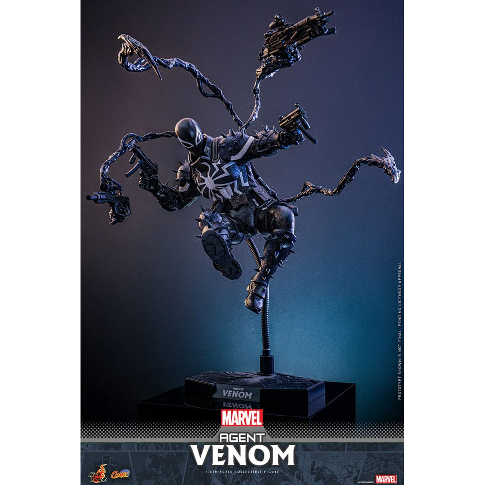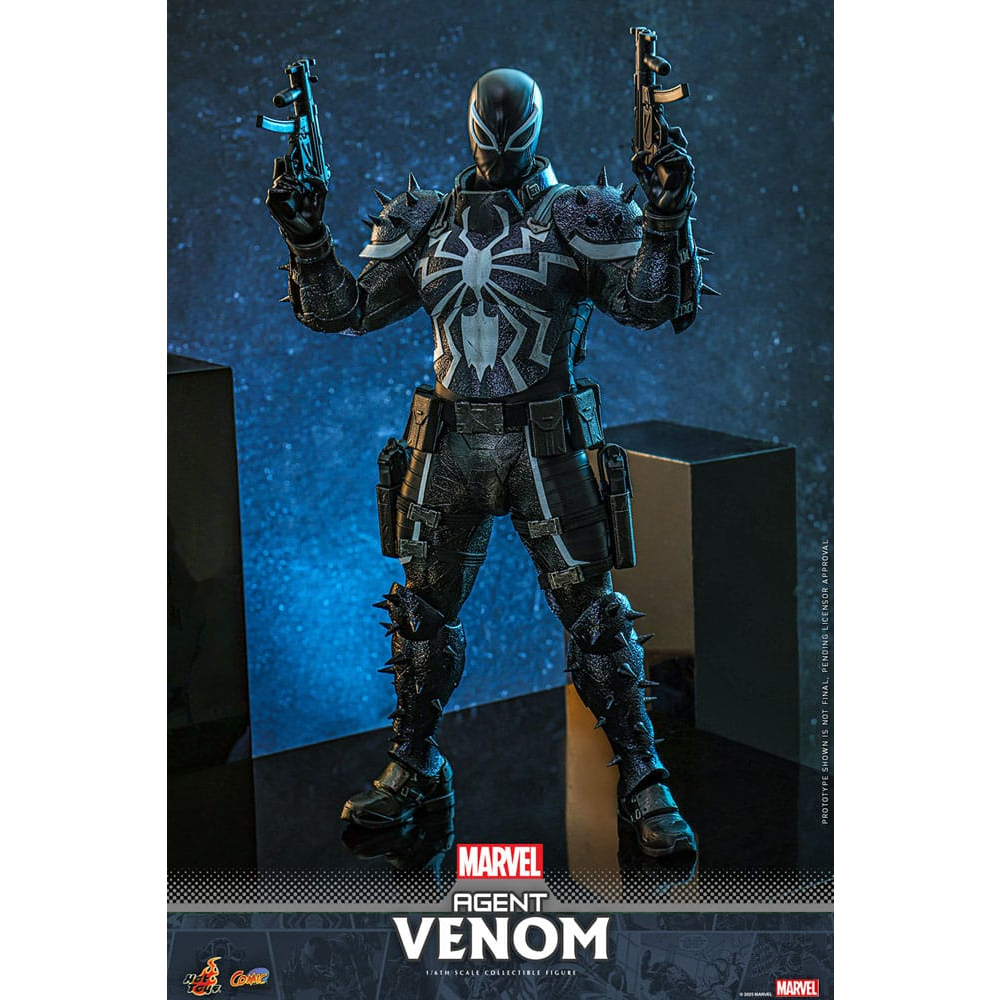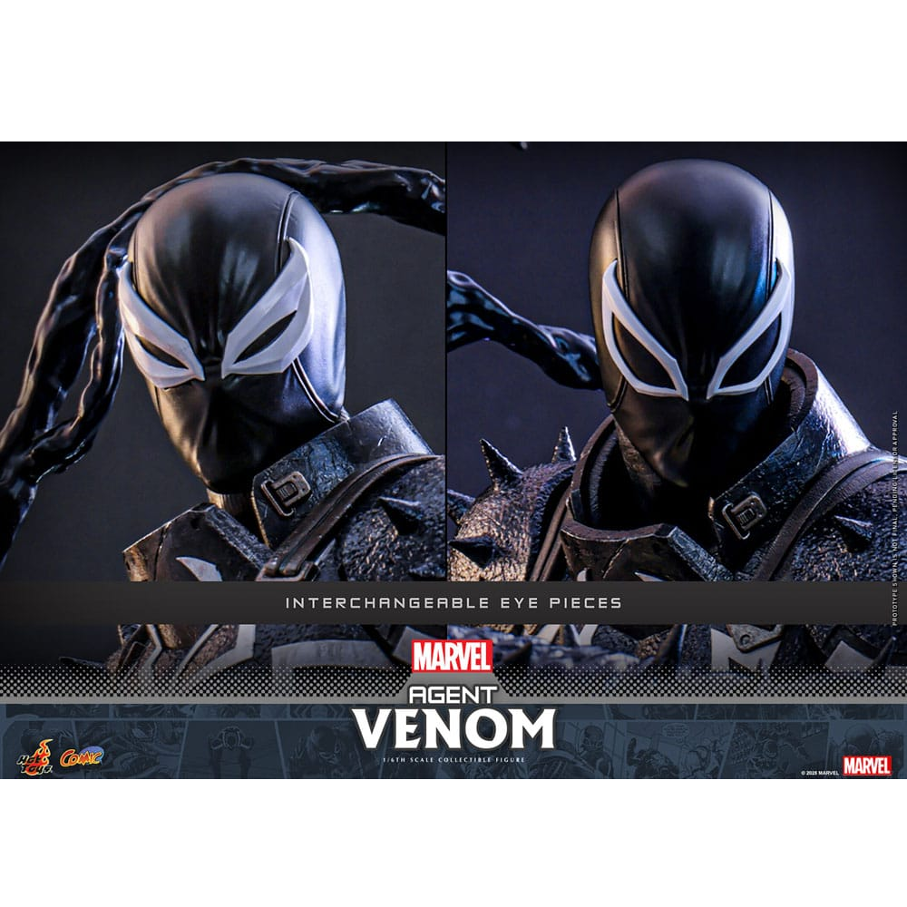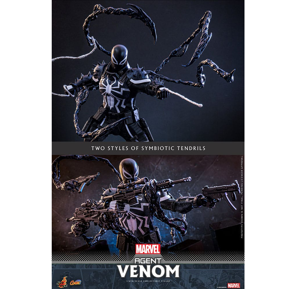 Agent Venom is een 32cm hoge action figure gemaakt door Hot Toys dus voorzien van extreem veel details. Agent Venom is voorzien van zijn symbiote armor met spikes. Zijn voorarm kan vervangen worden voor zijn blade arm. Twee tentakels kunnen aan zijn rug worden bevestigd en kunnen worden geposeerd. Hij komt met een aantal wapen accessoires zoals een machine gun, submachine gun, pistolen en sniper rifle. Daarnaast wordt er een luxe flight stand meegeleverd met zijn naam erop.