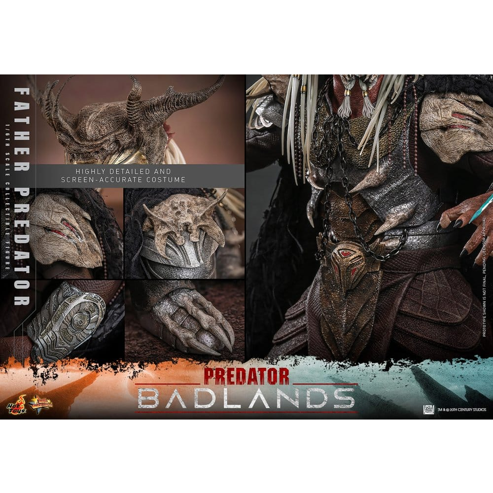 Father Predator Njohrr uit Predator Badlands is een 36cm hoge zeer gedetaileerde action figure uit de Hot Toys Movie Masterpiece serie. Father Predator Njohrr komt met veel extra handen, verschillende wristblades, wapen accessoires en masker. Zijn ogen zijn individueel van elkaar te bewegen en hij komt met verschillende kaken om zijn uiterlijk naar wens aan te passen. Father Predator Njohrr's outfit is deel van stof gemaakt en tot in de kleinste details nagemaakt. Uiteraard kan hij op veel punten bewegen.