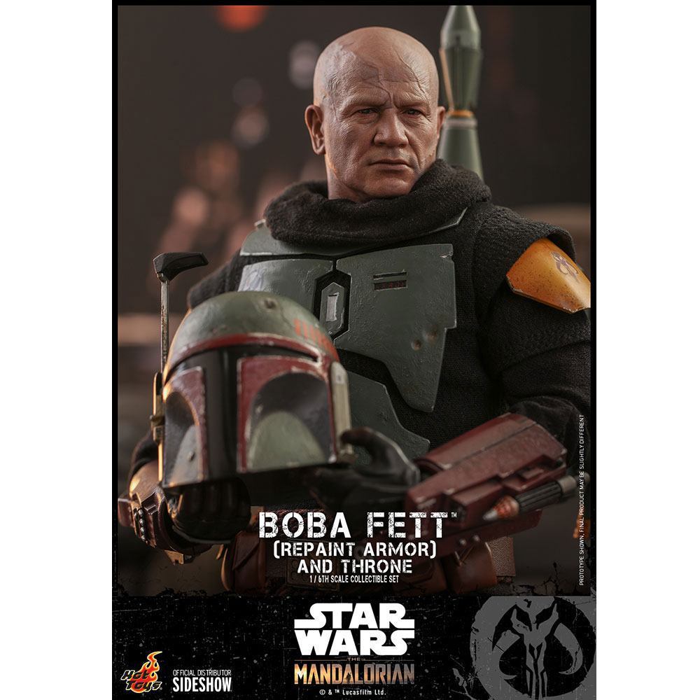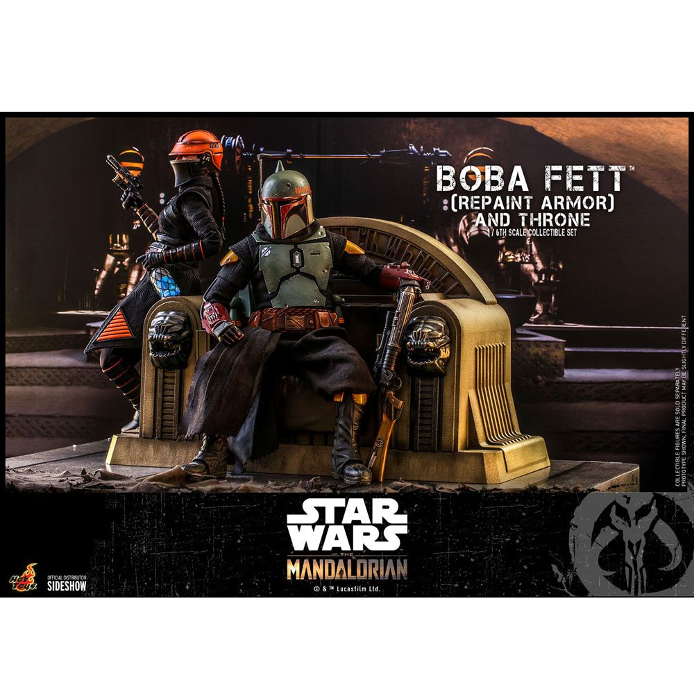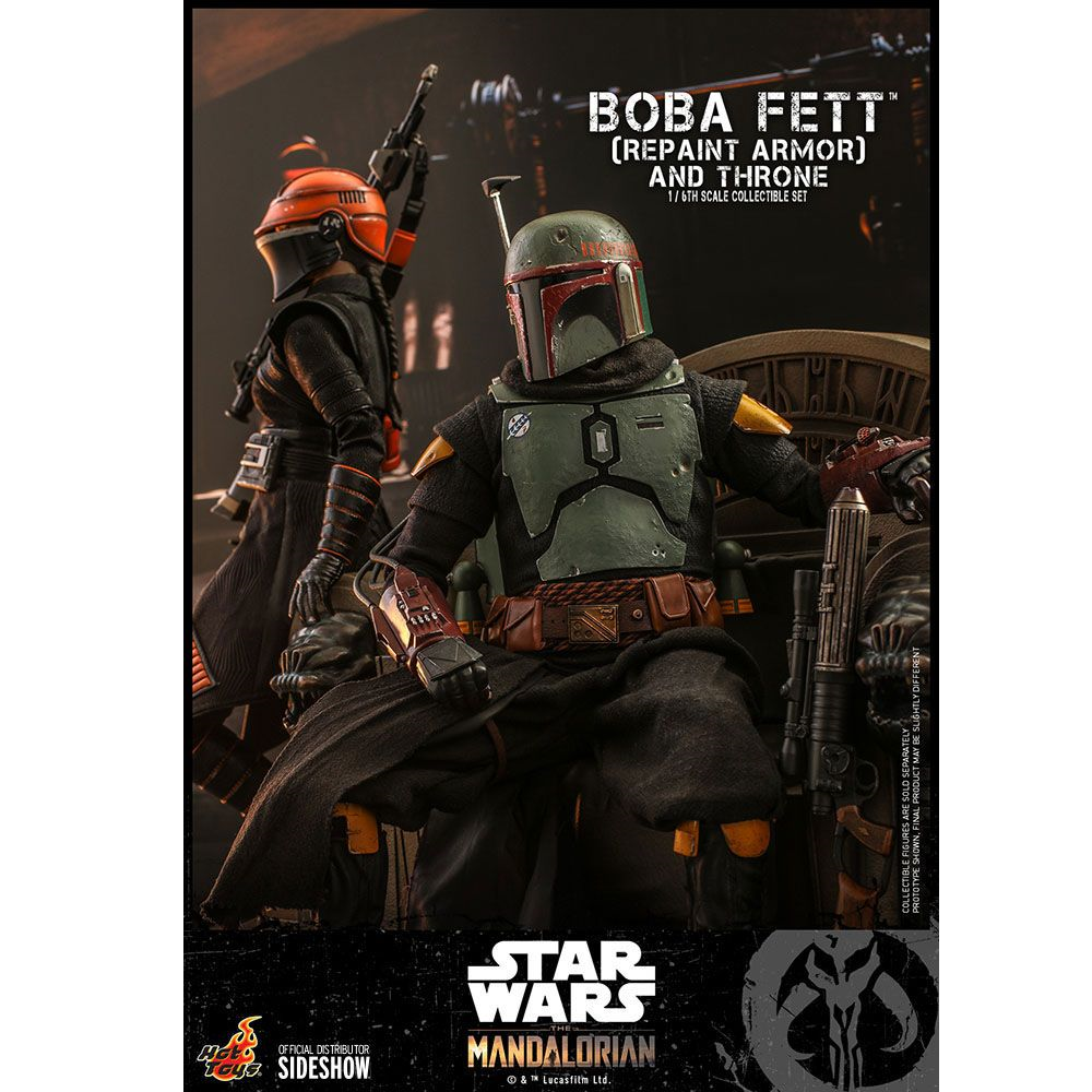Deze Boba Fett (Repaint Armor) met Throne is gemaakt door Hot Toys en voorzien van enorm veel details. Boba Fett is 30cm hoog en kan op veel punten bewegen. Hij wordt geleverd met Helm, Jetpack, Vlammenwerper effect, zweep, blaster pistool, blaster rifle en standaard. Daarnaast wordt er een grote troon meegeleverd waar Boba Fett op kan zitten om zo de scene uit the Mandalorian na te bootsen.