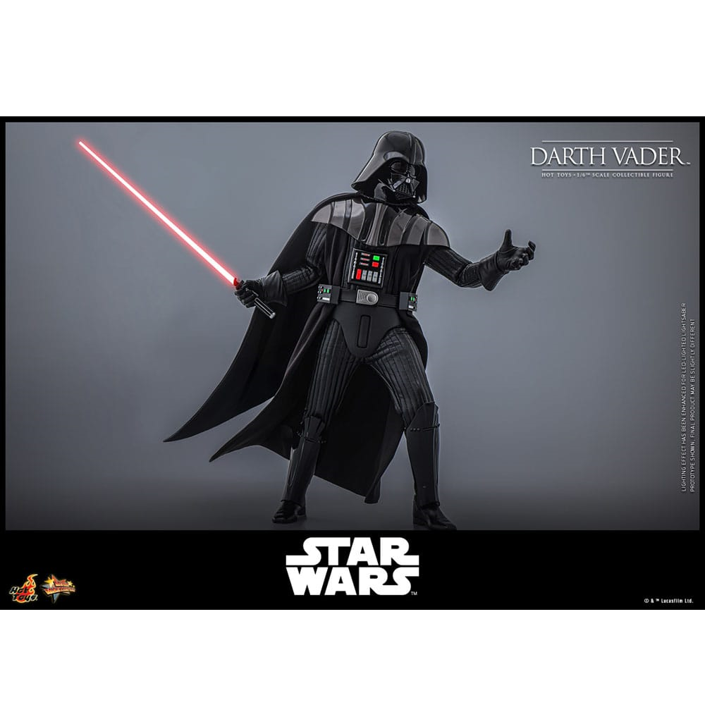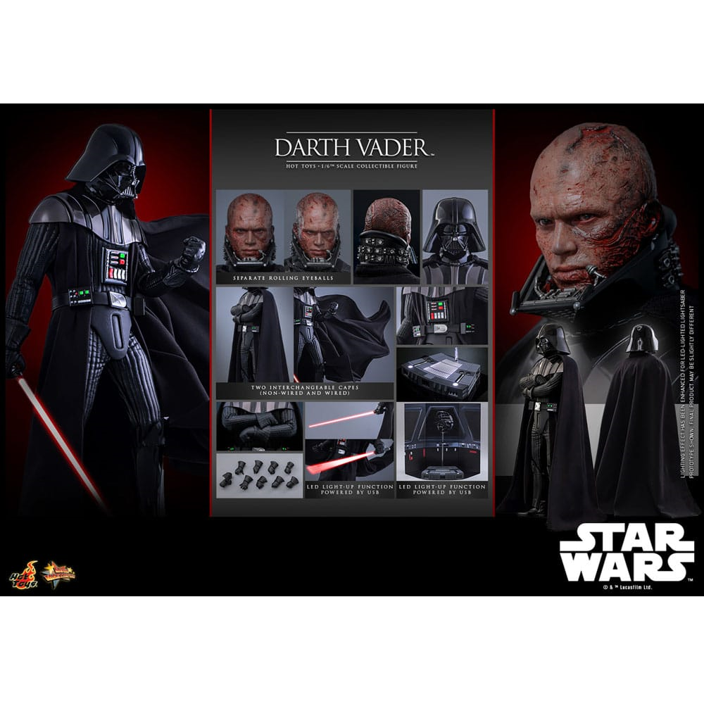 Zoek je de ultieme Darth Vader action figure uit Star Wars: Episode III Revenge of the Sith? Dan is deze Darth Vader Movie Masterpiece van Hot Toys de juiste keus! Darth Vader komt met helm zodat je hem met of zonder helm kunt poseren. Zijn beide ogen zijn indidivueel van elkaar te bewegen en zijn hoofd is tot in extreem detail nagemaakt. Zijn lightsaber, borstkast paneel en luxe standaard zijn allemaal voorzien van LED verlichting. Daarnaast worden er twee capes meegeleverd waarvan 1 wired is zodat je meer poseermogelijkheden krijgt. Ook worden er extra handen meegeleverd.