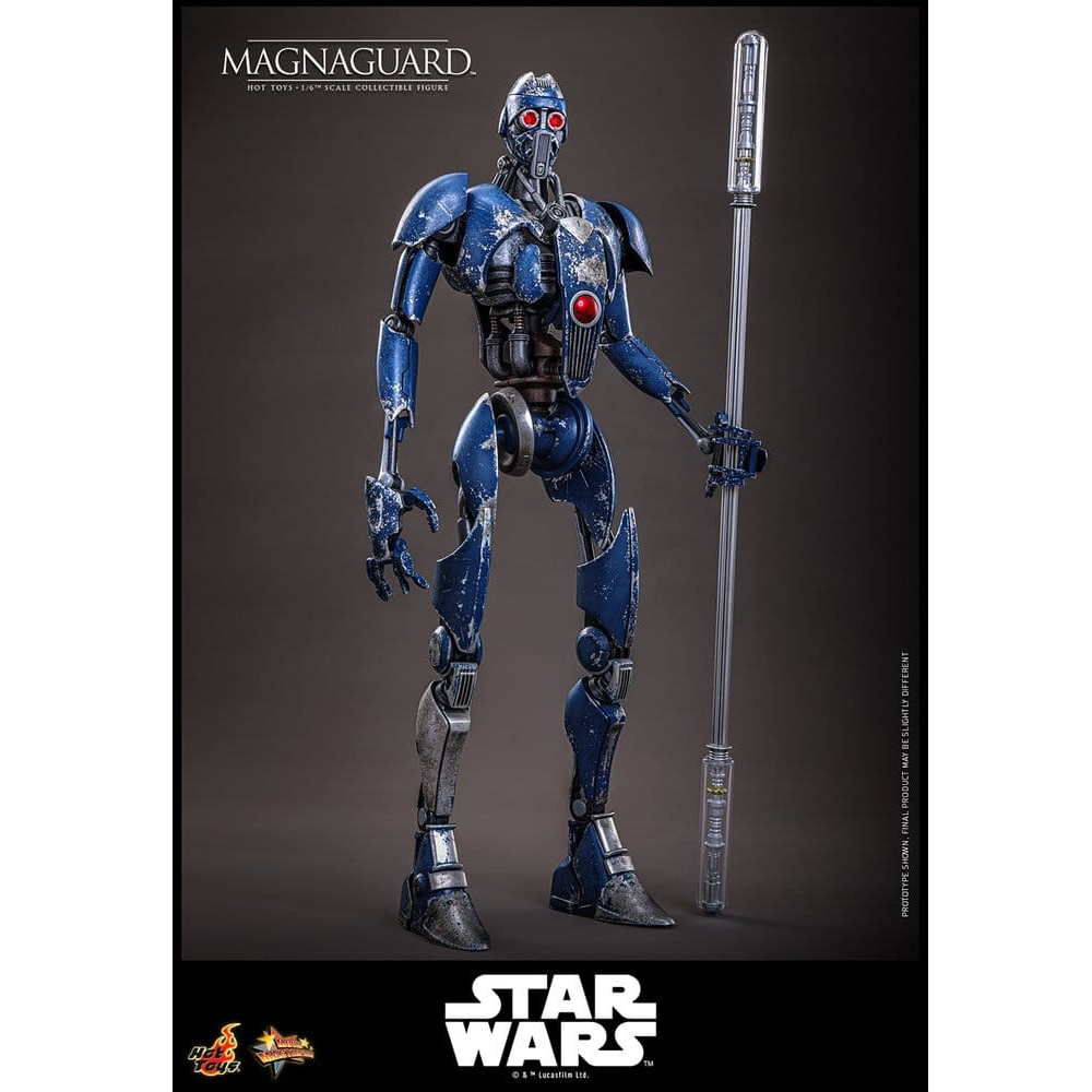Deze MagnaGuard action figure is voorzien van LED verlichte ogen, afneembare mantel, electrostaff met effect accessoires en een luxe standaard. De MagnaGuard is door Hot Toys voorzien van extreem veel details en kan op zeer veel punten bewegen. Zijn ontwerp is gebaseerd op zijn looks uit Star Wars: the Clone Wars.
