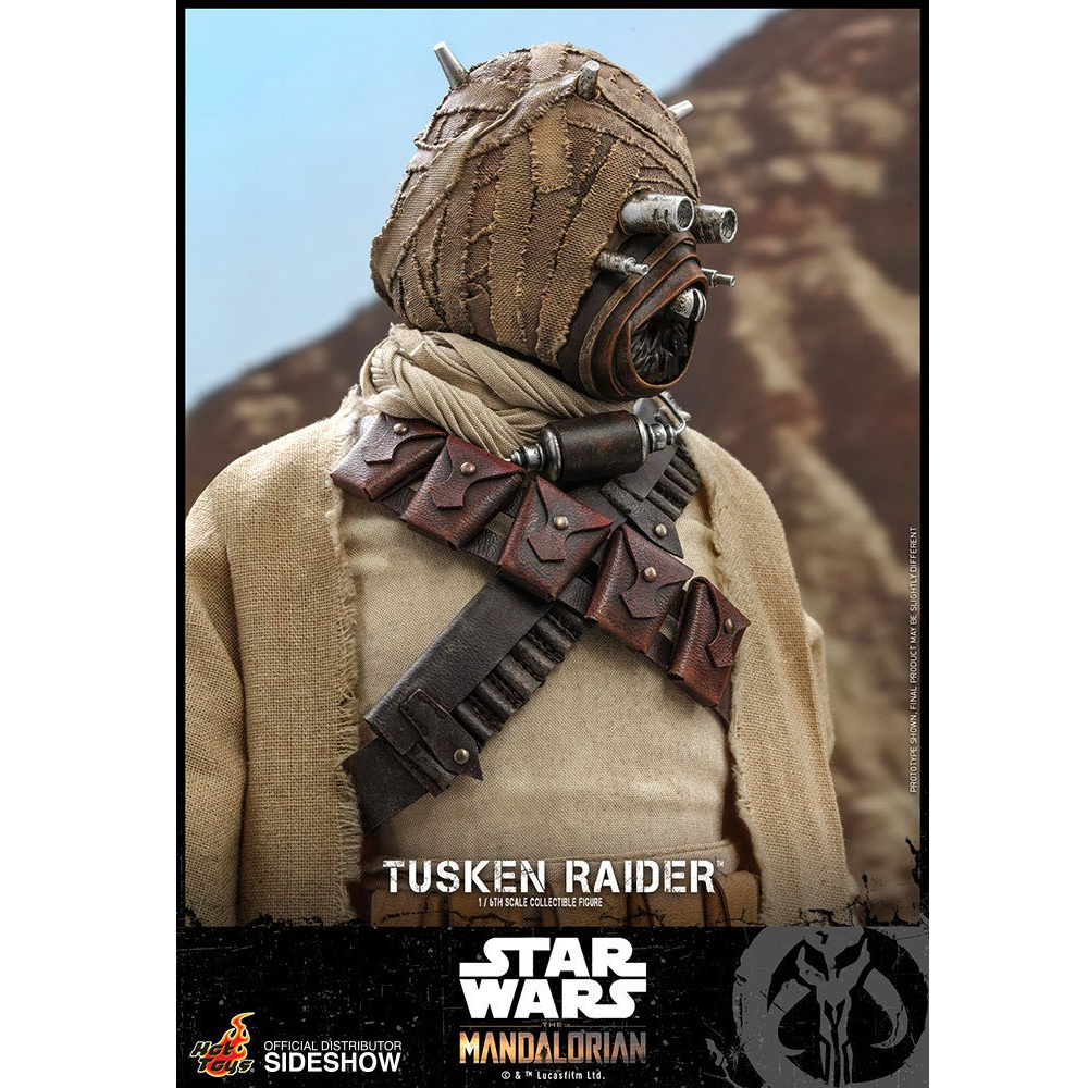 Deze Hot Toys Tusken Raider action figure is voorzien van enorm veel details en is 31cm hoog. De Tusken Raider komt met veel acessoires en een luxe standaard. Er worden verschillende extra handen meegeleverd, een verrekijker, 3 wapen accessoires en er is enorm veel aandacht besteed aan zijn outfit. Zijn outfit is van echt stof gemaakt en hij kan natuurlijk op zeer veel punten bewegen. Zijn looks zijn gebaseerd op de Tusken Raiders uit Star Wars: the Mandalorian.