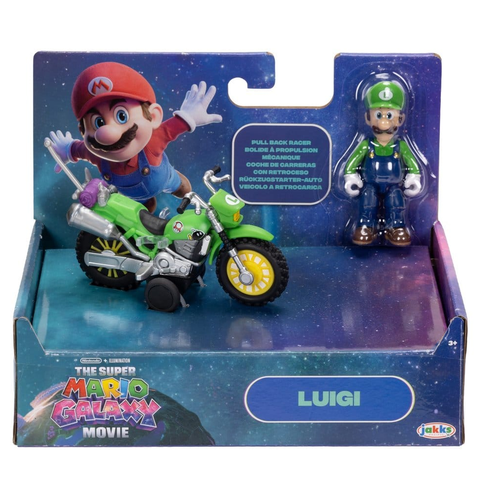 The Super Mario Galaxy Movie Luigi Action Figure with Pull Back Motorcycle