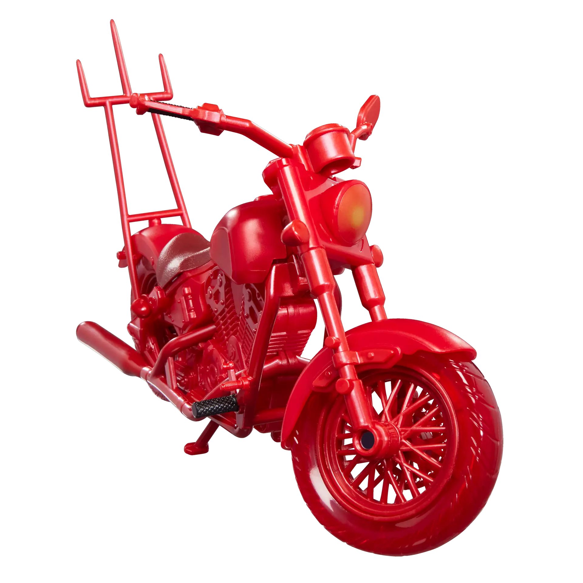Deze Ghost Rider action figure is gebaseerd op de comics en bestaat uit een 15cm hoge Johnny Blaze met zijn rode motor en veel leuke effect accessoires. Zo wordt er een zweep meegeleverd, 3 extra handen, een extra hoofd en en meerdere vlam effecten voor op de motor.
