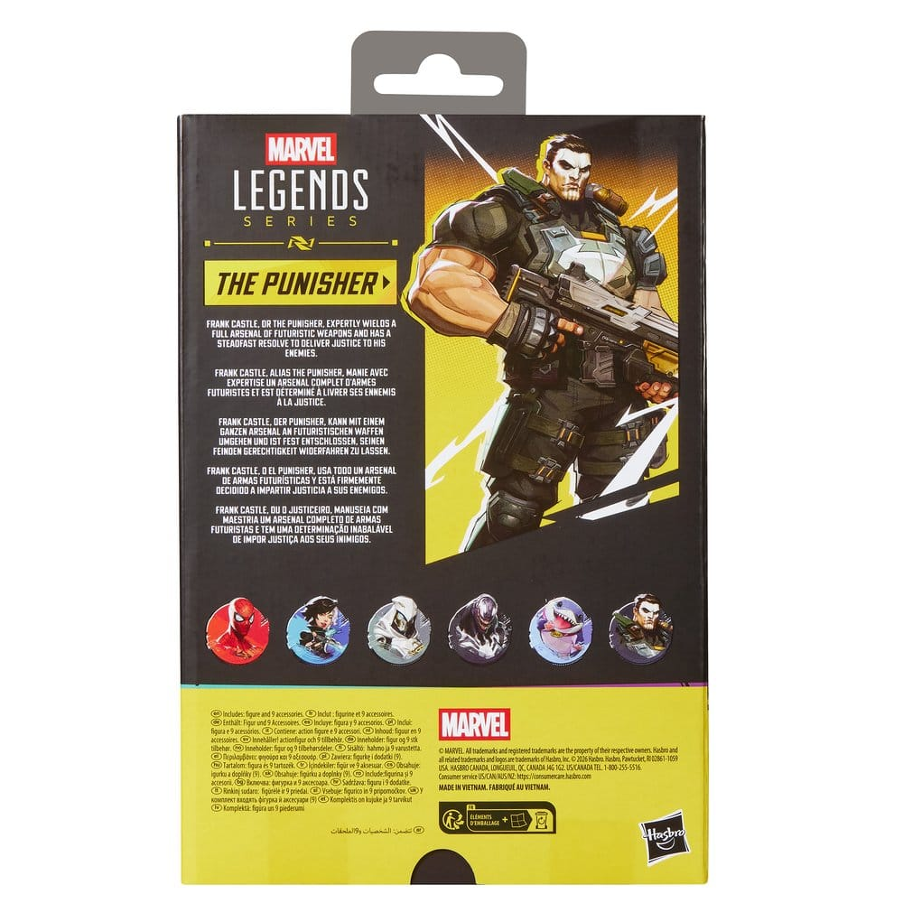 Deze deluxe action figure van The Punisher uit Marvel Rivals is 15cm hoog en kan op veel punten bewegen. The Piunisher komt met 2 wapen accessoires, 2 extra handen en extra hoofd. Zijn ontwerp is gebaseerd op zijn comic book look uit de game Marvel Rivals en hij is onderdeel van de Marvel Legends Series van Hasbro.