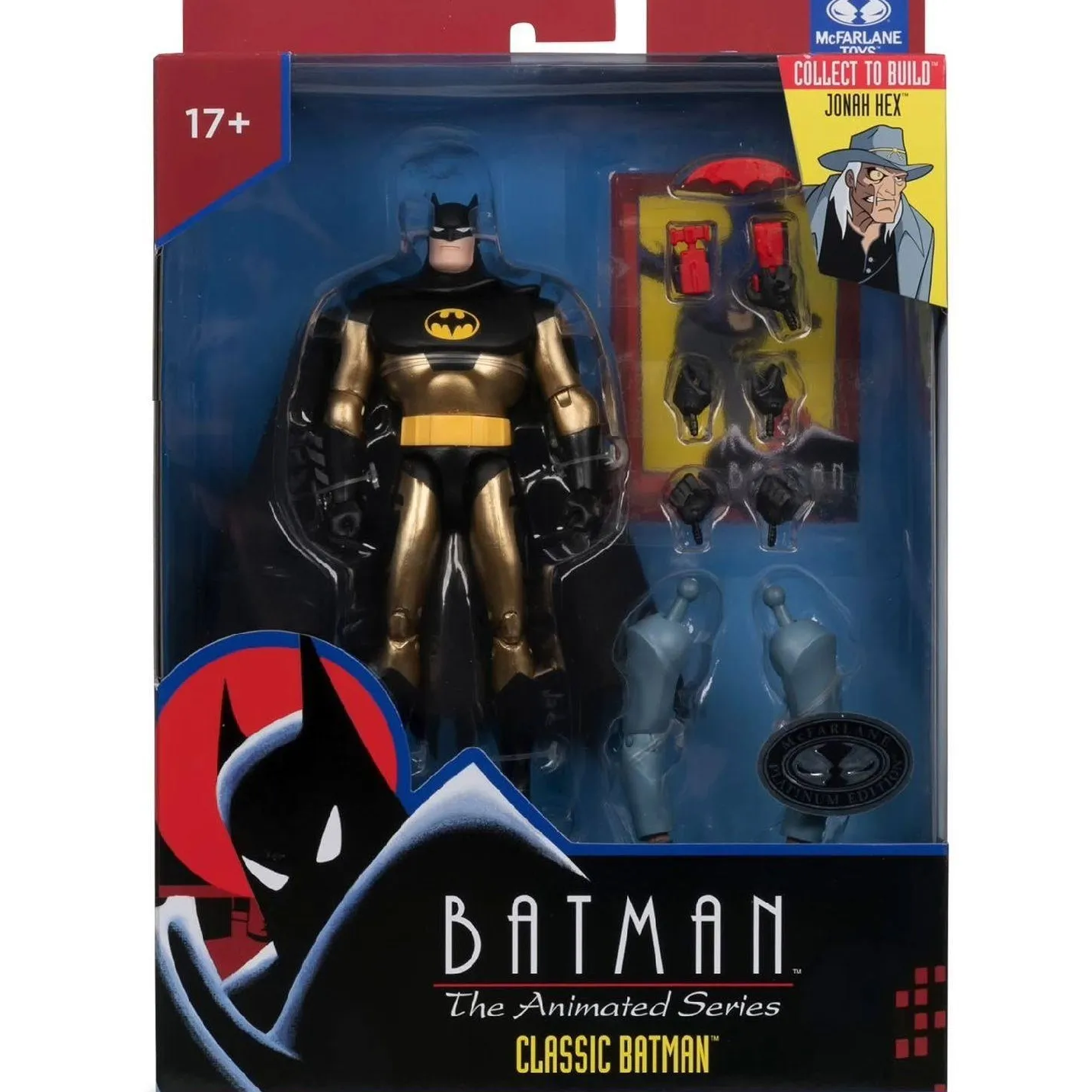 Deze set van 6 action figures uit Batman: the Animated Series komt uit de DC Direct lijn van McFarlane. Classic Batman normaal en platinum, Killer Croc normaal en platinum, Ras al Ghul en The Grey Ghost komen elk met veel accessoires en kunnen op veel punten bewegen. Deze set is onderdeel van een Build a Figure serie. Bij elk figuur zit een onderdeel van Jonah Hex. Spaar alle vier de figuren om zelf je eigen Jonah Hex action figure te bouwen.