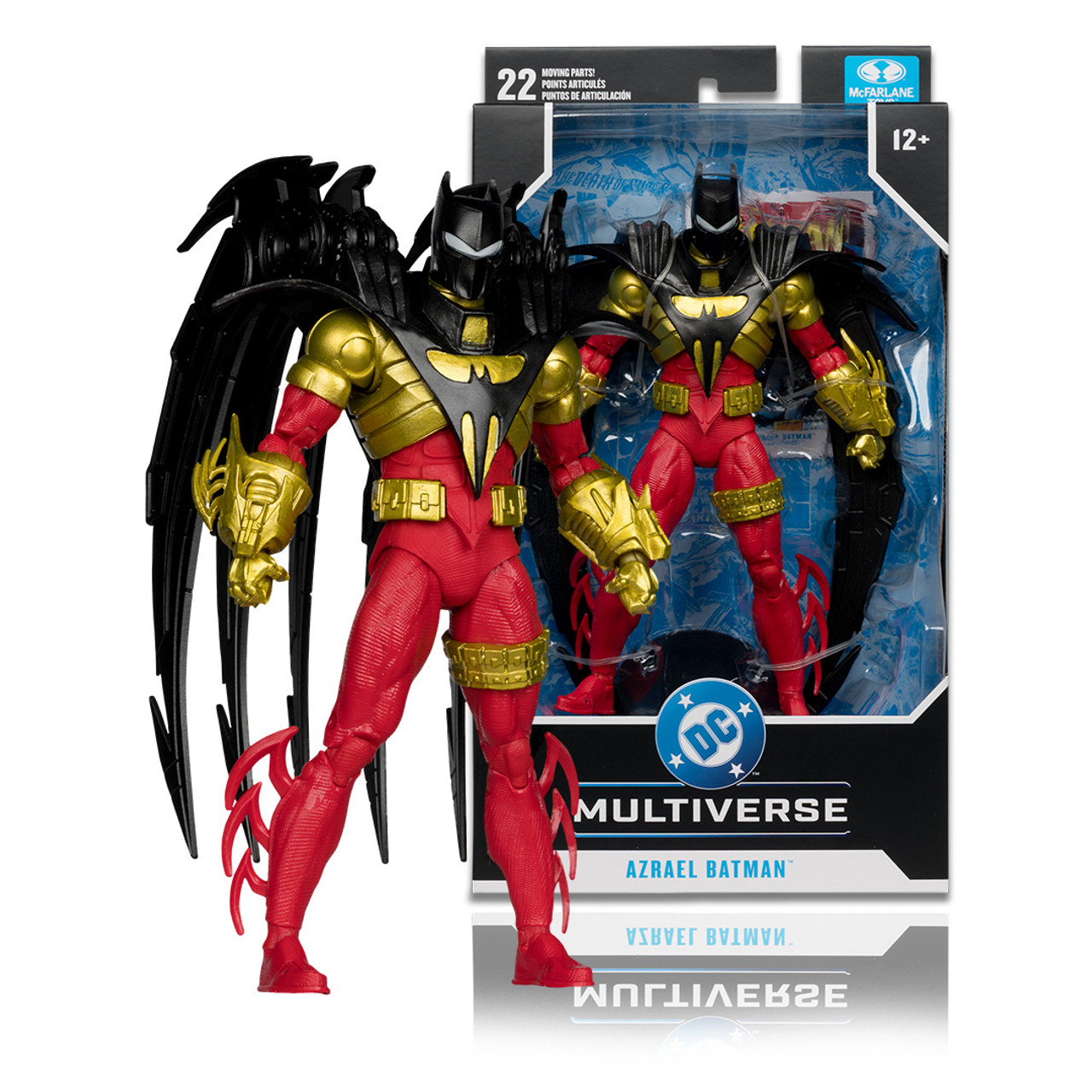 Deze Azrael Batman (Knightquest) action figure is 18cm hoog en kan op 22 punten bewegen. Azrael Batman komt met 6 afneembare vleugels en McFarlane standaard. Zijn design is gebaseerd op de Batman: Knightquest comics en hij komt uit de DC Multiverse lijn van McFarlane.