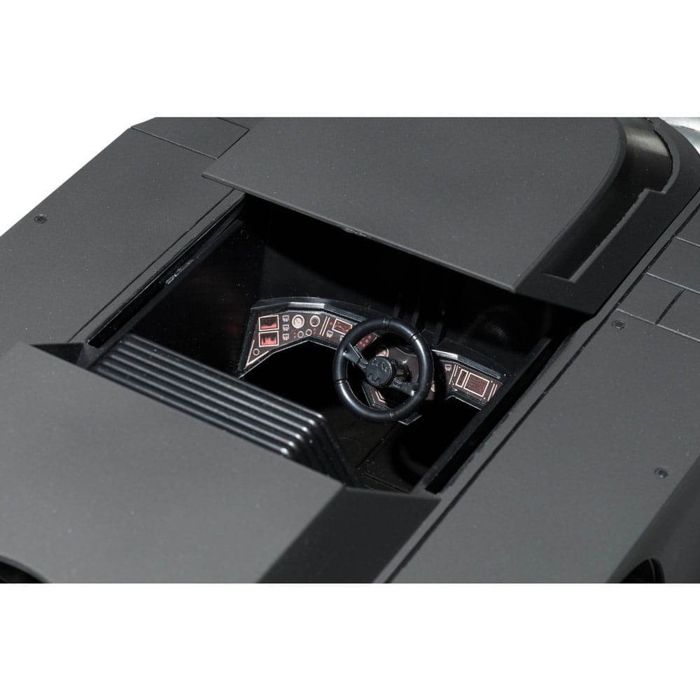 Deze 58cm lange Batmobile is gebaseerd op de Batmobile uit DC Rebirth. Met een druk op de knop opent de cockpit die ruimte biedt aan een 18cm hoog McFarlane figuur. De cockpit is voorzien van veel details net als de buitenkant van het voertuig.