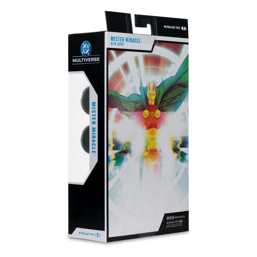Deze Mister Miracle (New Gods) action figure is gebaseerd op zijn looks uit The New Gods Comics. Mister Miracle is 18cm hoog en kan op 22 punten bewegen. Hij wordt geleverd met twee aero disc accessoires. Uiteraard wordt de bekende McFarlane standaard ook meegeleverd.