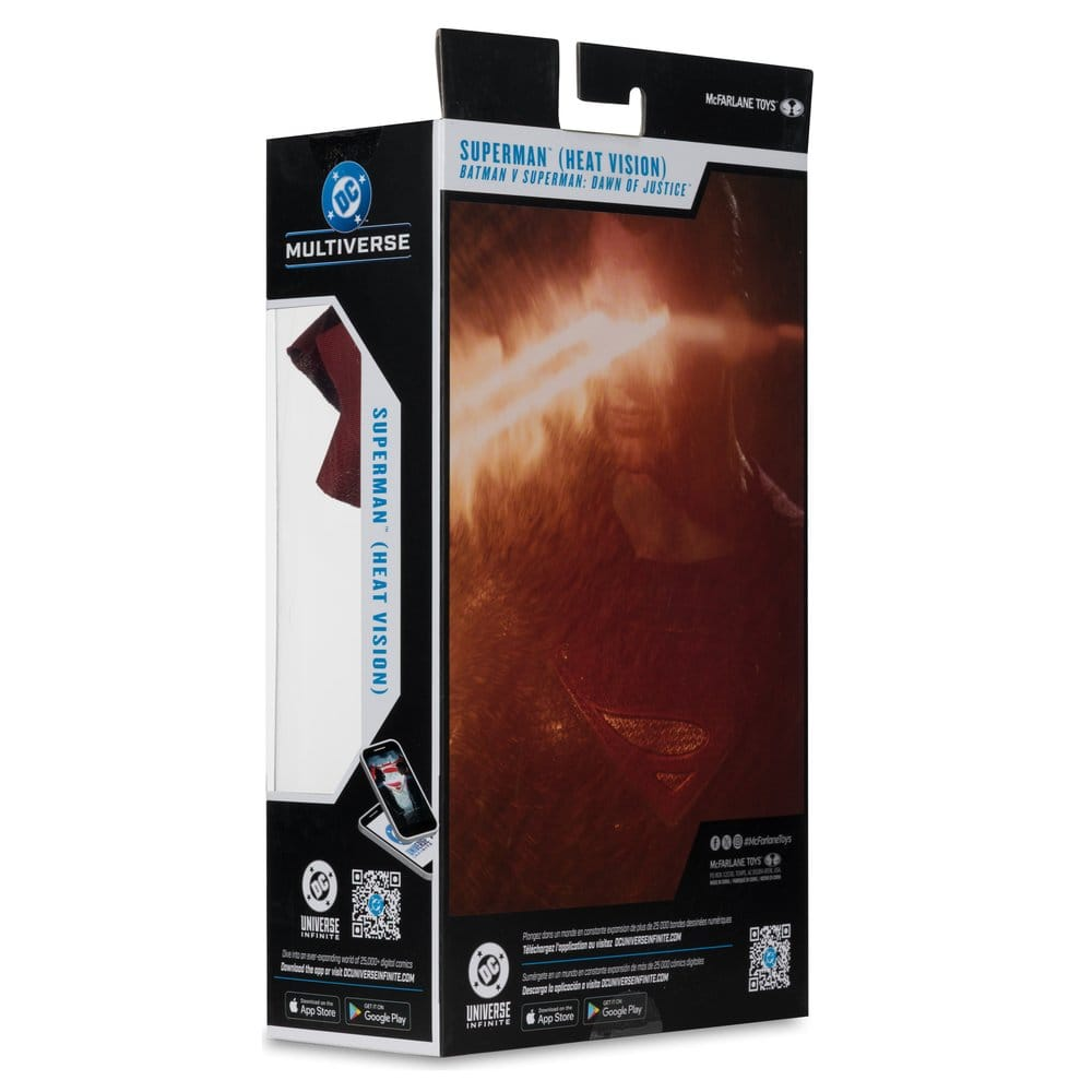 Deze Superman (Heat Vision) action figure kan op 22 punten bewegen en is 18cm hoog. Superman wordt geleverd met biografie kaart en McFarlane standaard. Zijn ontwerp is gebaseerd op zijn looks uit de Batman v Superman: Dawn of Justice film. Hij is tevens voorzien van een stoffen cape.