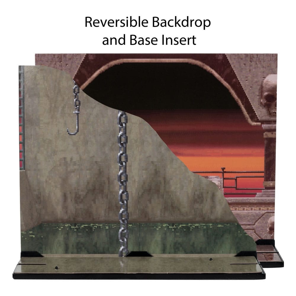 Deze Mortal Kombat Scorpion vs. Raiden set bestaat uit twee action figures van 18cm hoog met veel accessoires, flight stands en coole backdrop. Scorpion komt met twee extra gezichten, twee extra handen, speer met touw en masker accessoire. Raiden komt met twee extra gezichten, twee extra handen en twee effect accessoires. De flight stands kunnen op de speciale standaard worden geschoven en er wordt een backdrop meegeleverd met twee kanten zodat je de kombat zones The Deadpool en Kombat Tomb kunt gebruiken als achtergrond.