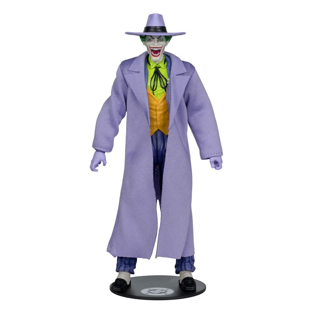 Deze The Joker (Crisis on Infinite Earths) action figure komt met revolver, stoffen jas, biografie kaart en McFarlane standaard. The Joker is 18cm hoog en kan op 22 punten bewegen. Hij zit in een blister verpakking en wordt geleverd met een comic book.