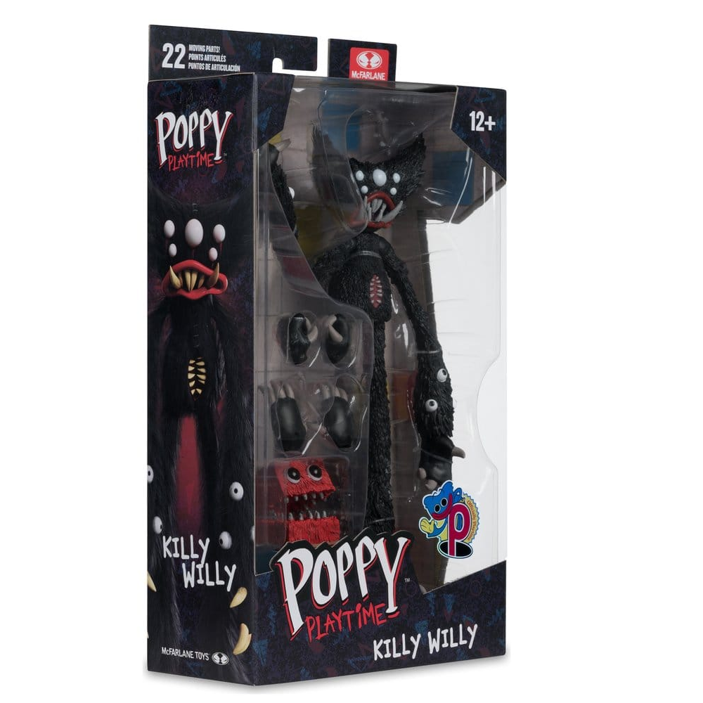 Deze Killy Willy action figure uit de game Poppy Playtime is 19cm hoog en kan op veel punten bewegen. Hij is voorzien van buigbare ledematen en wordt geleverd met veel accessoires. Zo worden er 4 extra handen en Boxy Boo accessoire meegeleverd. McFarlane levert ook een standaard in Poppy Playtime stijl mee die je kunt verbinden met de standaard van andere figuren uit de serie.
