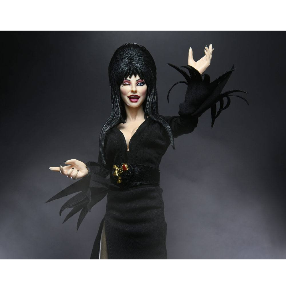 20cm hoge action figure van Elvira Mistress of the Dark met echte stoffen kleding.