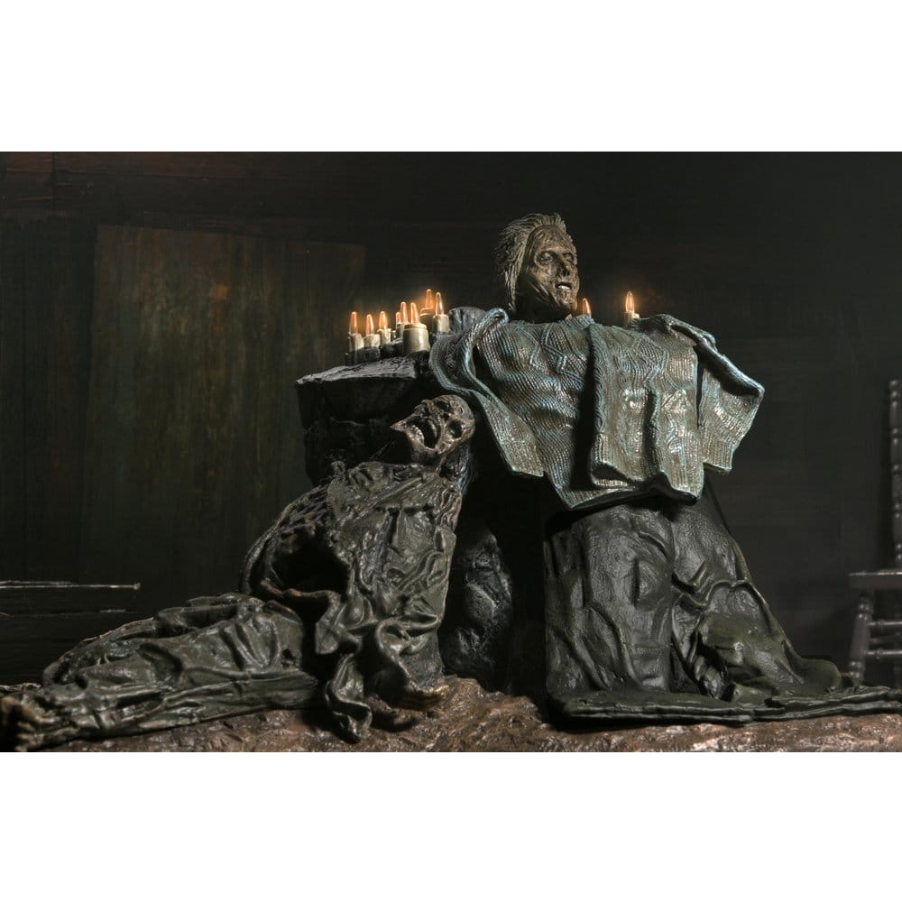 Deze Pamela Shrine Diorama Deluxe Set uit Friday the 13th: the Game is een prachtig stuk dat perfect aansluit bij je Jason Voorhees NECA figuren. Het hoofd van Pamela Voorhees is omringt door kaarsen die via LED verlichting voor een geweldige sfeer zorgen.