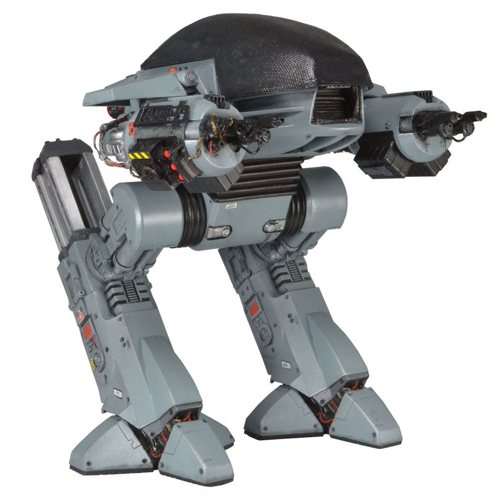 Deze ED-209 action figure uit Robocop kan op veel punten bewegen. Zijn hoofd, benen, armen en wapens kunnen bewegen en hij is met zijn 25cm hoogte een imposant figuur. Met een druk op de knop hoor je hydraulische geluiden en geluiden uit de film zoals "You have 15 seconds to comply" en meer.