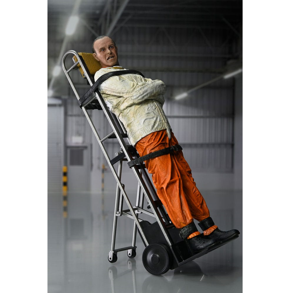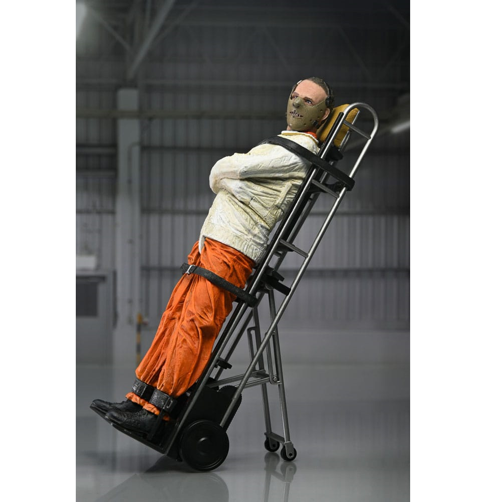 Deze action figure van Dr. Hannibal Lecter is gebaseerd op zijn looks uit the Silence of the Lambs en komt met verschillende hoofden zodat je Hannibal op verschillende manieren kunt poseren. Hij zit net als in de bekende filmscene in een dwangbuis op een steekkar.
