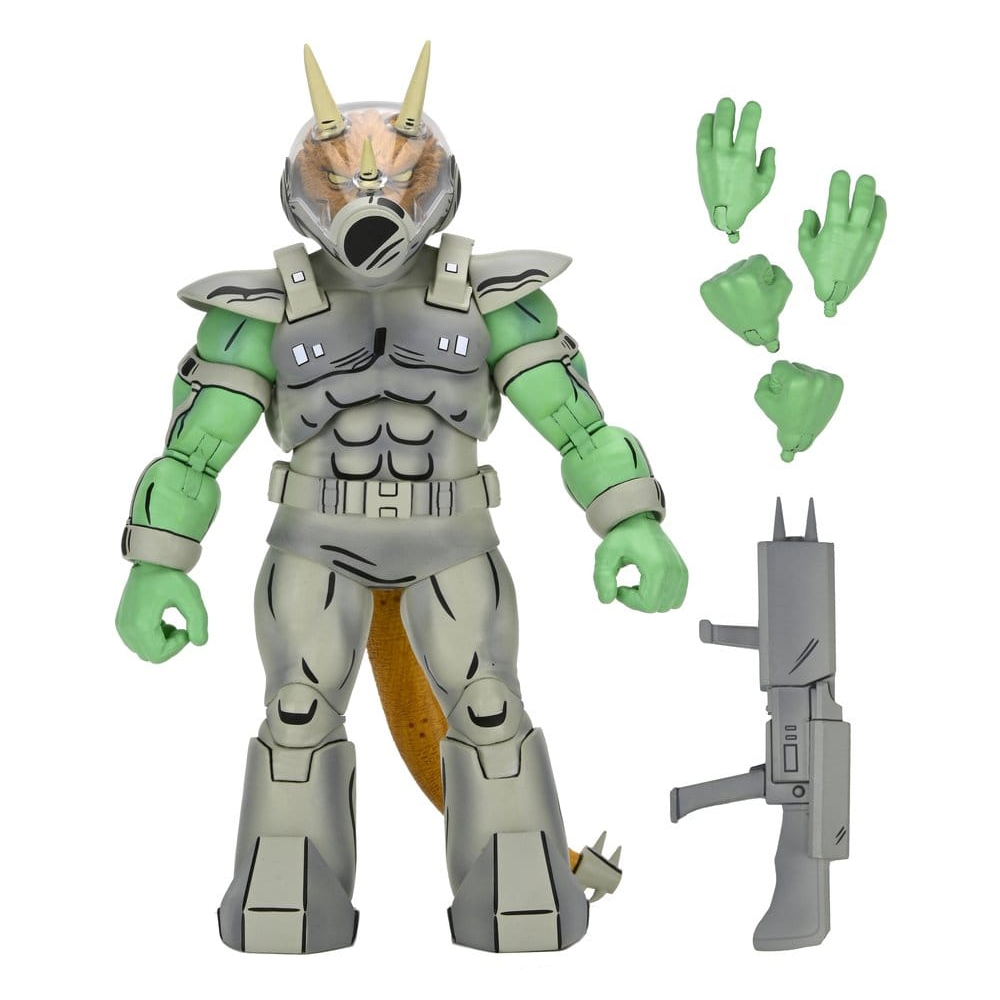18cm hoge action figure van een Triceraton Shock Commando uit de Teenage Mutant Ninja Turtles Mirage Comics serie van NECA.