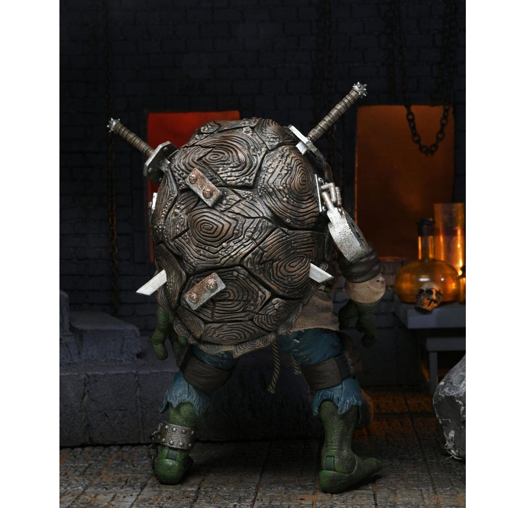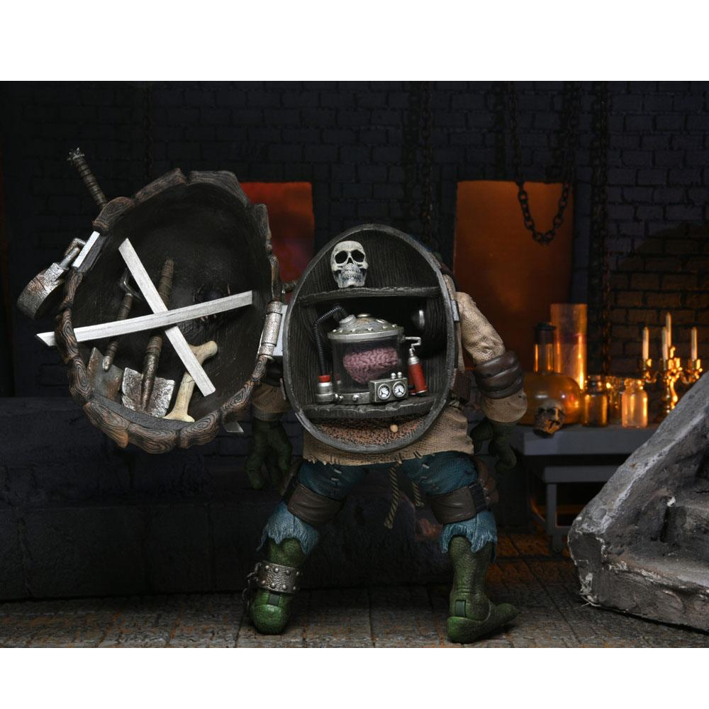 NECA kruist Universal Monsters met Teenage Mutant Ninja Turtles. Deze Leonardo as The Hunchback action figure is 18cm hoog en kan op veel punten bewegen. Leonardo wordt geleverd met 6 extra handen, twee zwaarden, twee scheppen, vlam effecten, doodshoofd en bot.