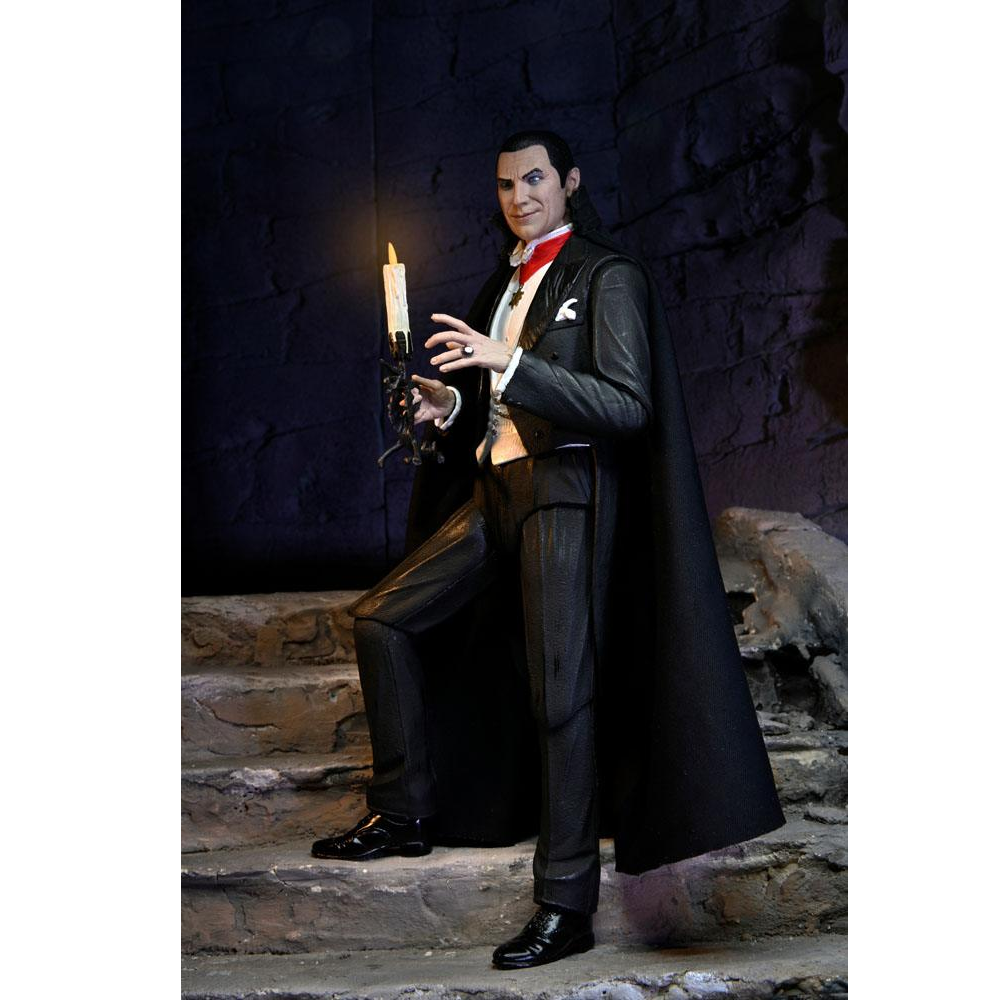 Deze 18cm hoge action figure van Ultimate Dracula (Transylvania) komt uit de Universal Monsters serie van NECA en kan op veel punten bewegen. Hij wordt geleverd met veel accessoires zoals 2 extra hoofden, 2 extra handen, een vleermuis, kandelaar en servies.