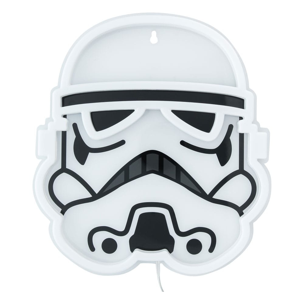 Stormtrooper Neon Lamp voor aan de muur. Afmetingen 26 x 24 x 2 cm. Voeding via USB kabel.