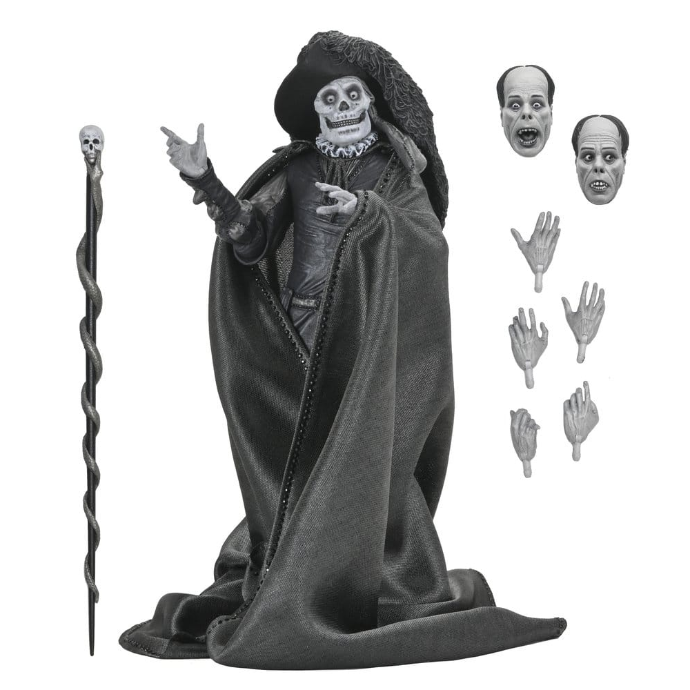 Deze The Phantom of the Opera action figure komt met hoed, staf, stoffen mantel, 2 extra hoofden en 4 extra handen. The Phantom is 18cm hoog en kan op veel punten bewegen. Deze Masque of the Red Death Phantom van NECA is voorzien van enorm veel details en mag niet ontbreken in je horror collectie. Dit is een speciale zwart wit versie.