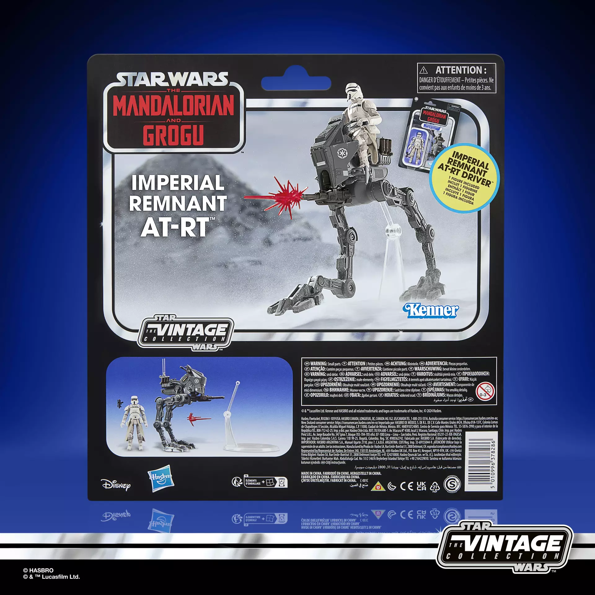Deze set van een Imperial Remnant AT-RT met een 10cm hoge AT-RT Driver is gebaseerd op hun look suit de Star Wars: the Mandalorian and Grogu film. De AT-RT kan op veel punten bewegen en de AT-RT driver kan plaatsnemen op het voertuig. Er wordt een handige standaard meegeleverd en een blast effect voor de AT-RT. De AT-RT Driver wordt geleverd op een retro kenner card met blaster accessoire.