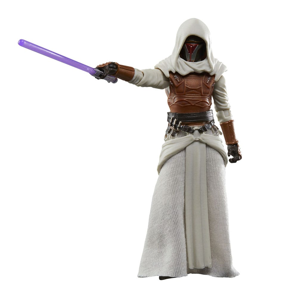 Deze 2-pack van Jedi Knight Revan & HK-47 komt uit de Star Wars Galaxy of Heroes Vintage Collection van Hasbro. Beide figuren zijn 10cm hoog. Jedi Knight Revan heeft een stoffen mantel en komt met lightsaber. HK-47 komt met zijn blaster accessoire. Beide figuren zitten op een retro kenner blister card verpakking.