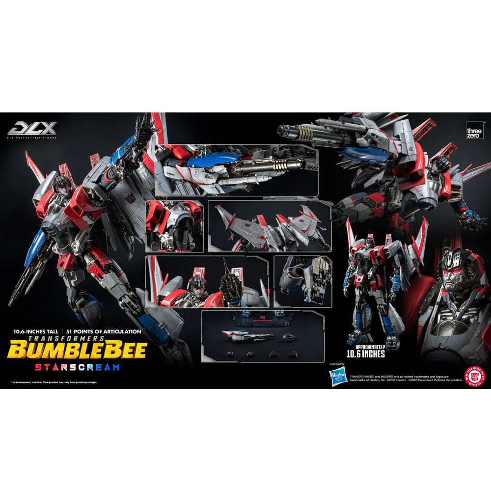Deze Starscream action figure is gebaseerd op zijn looks uit Transformers: Bumblebee en is 27cm hoog. Starscream komt uit de DLX serie van ThreeZero en is dus voorzien van enorm veel details. Hij kan op meer dan 51 punten bewegen en is 27cm hoog.