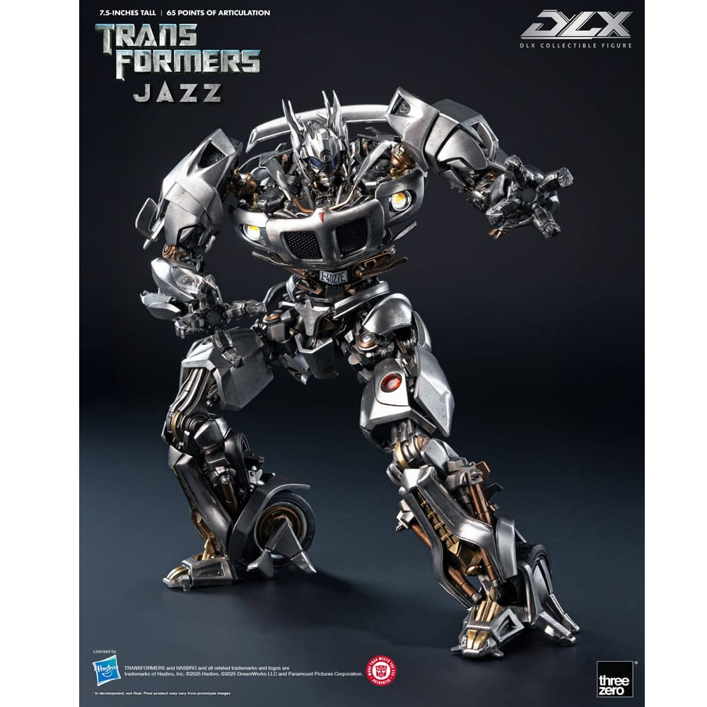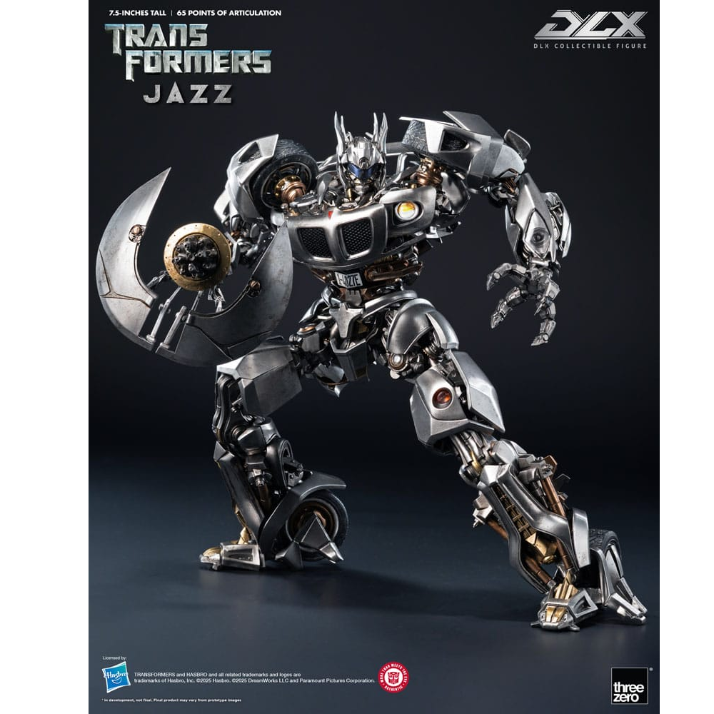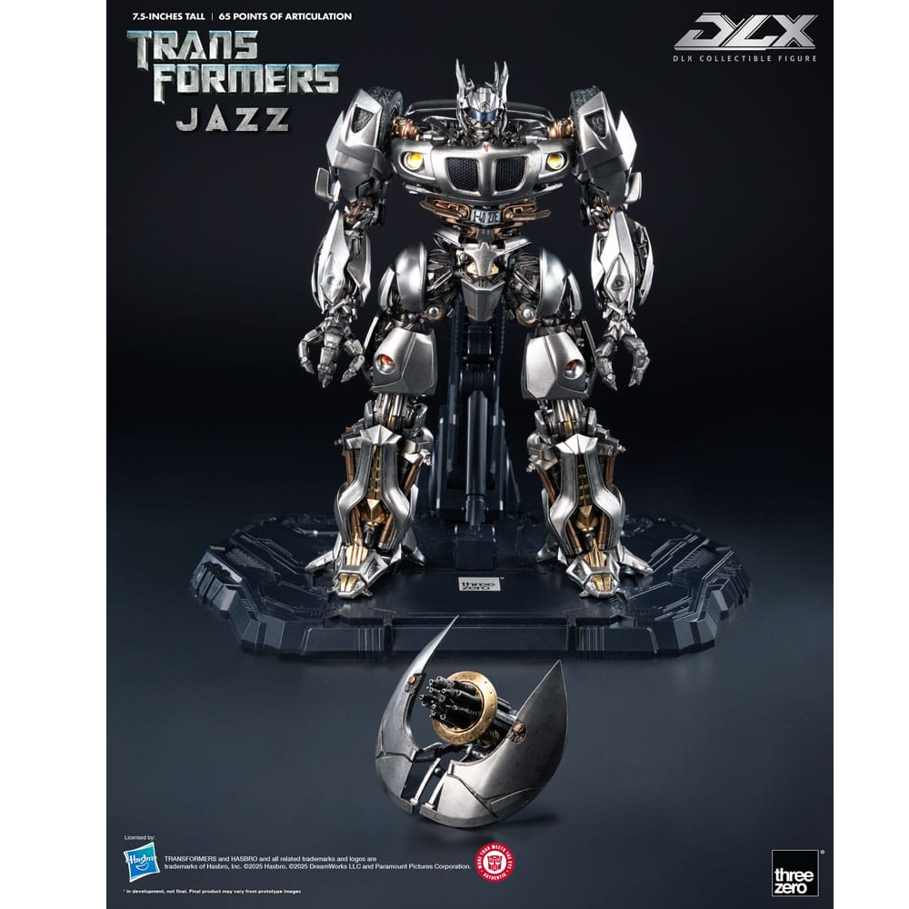 Deze Jazz Transformer komt uit de DLX lijn van ThreeZero en is voorzien van extreem veel details. Jazz kan op 65 punten bewegen en komt met LED features. Zijn ogen, Crescent Cannon, koplampen en achterlichten zijn voorzien van LED verlichting. Jazz is voorzien van meerdere lagen premium verf en is deels gemaakt van metalen onderdelen en hoogwaardig plastic. Jazz komt met zijn Crescent Cannon, verwijderbaar eye shield en een deluxe standaard.
