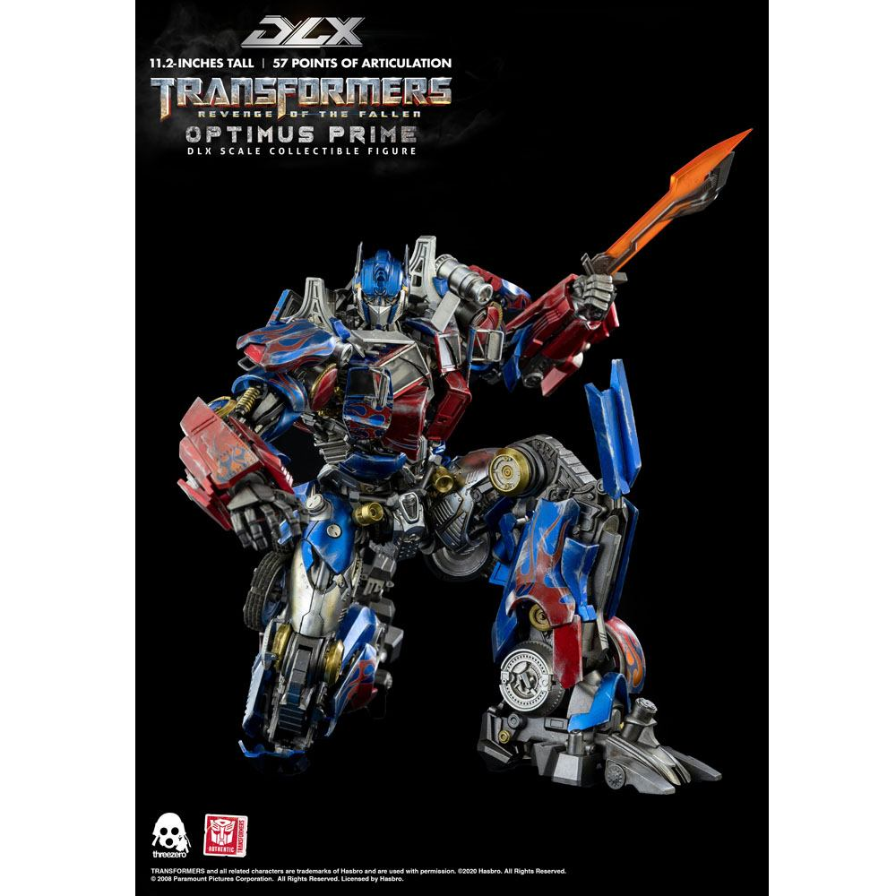 Deze Optimus Prime Transformer is gebaseerd op zijn looks uit Transformers: Revenge of the Fallen. Hij kan op 57 punten bewegen en is 28cm hoog. Optimus Prime komt uit de DLX serie van ThreeZero en is deels gemaakt van metalen onderdelen en hoogwaardig plastic. Deze Transformers kunnen niet transformeren maar zijn wel voorzien van extreem veel detail.