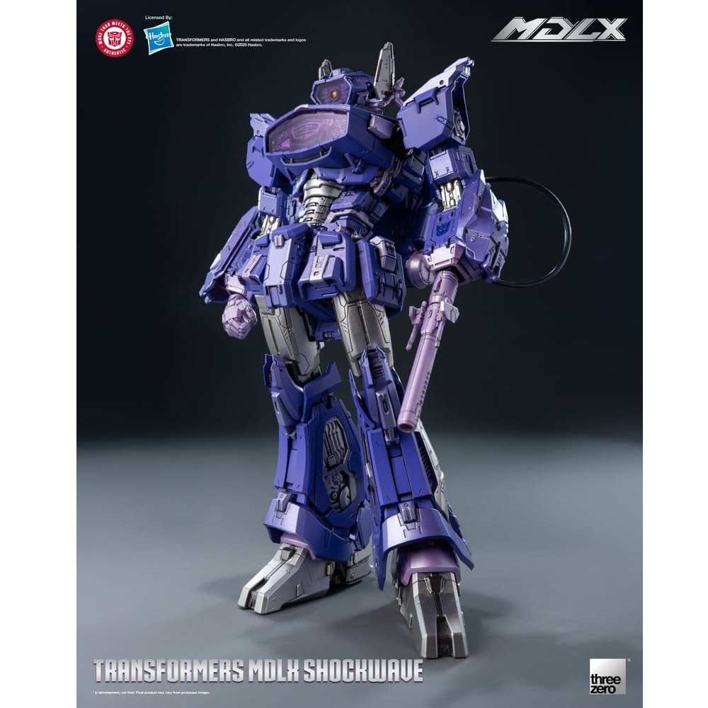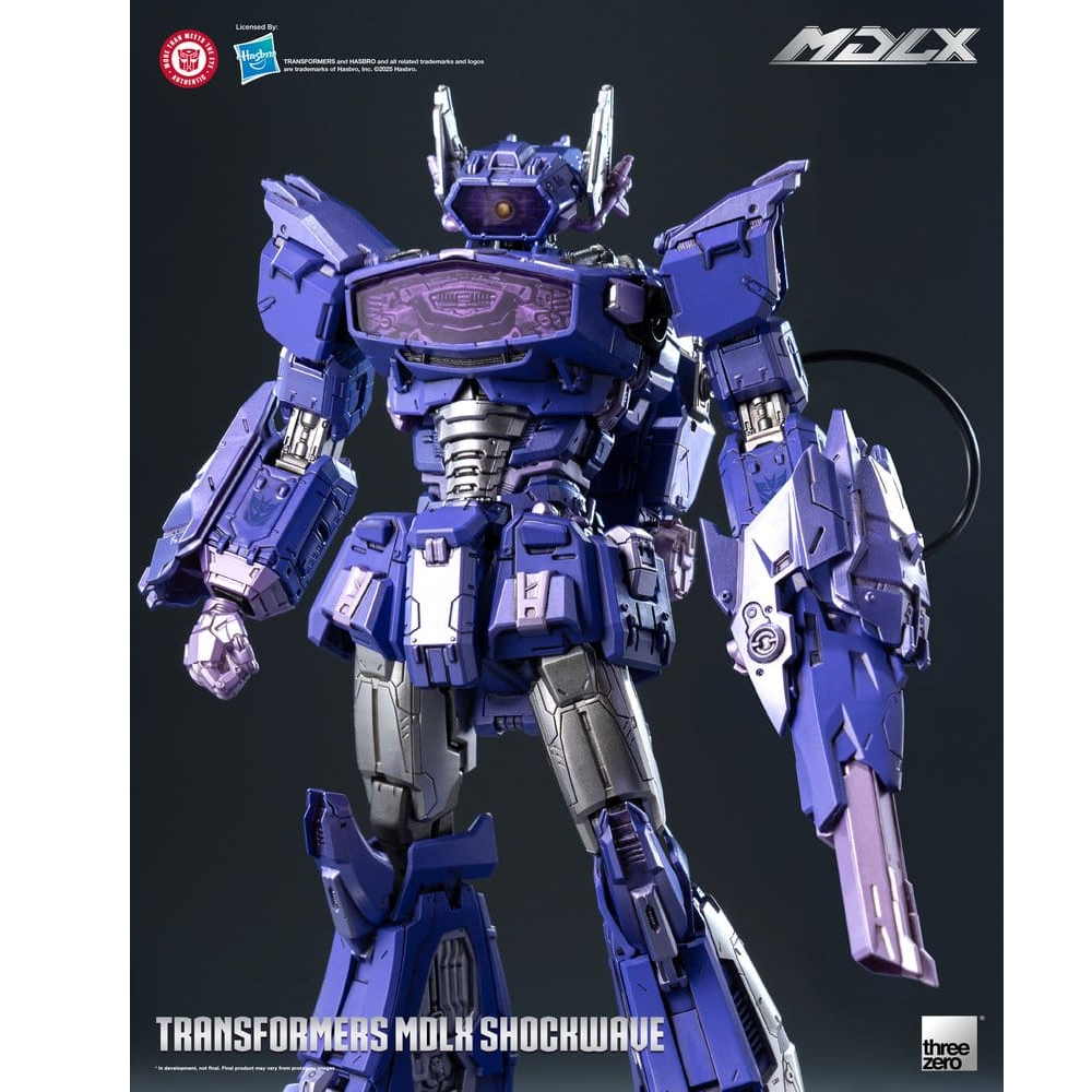 Deze Shockwave Transformer komt uit de MDLX lijn van ThreeZero en kan op 55 punten bewegen. Hij is deels gemaakt van metalen onderdelen en hoogwaardig plastic. Shockwave wordt geleverd met 4 paar verschillende handen, laser kanon, hyperflux kanon en een verwijderbare rugtas.