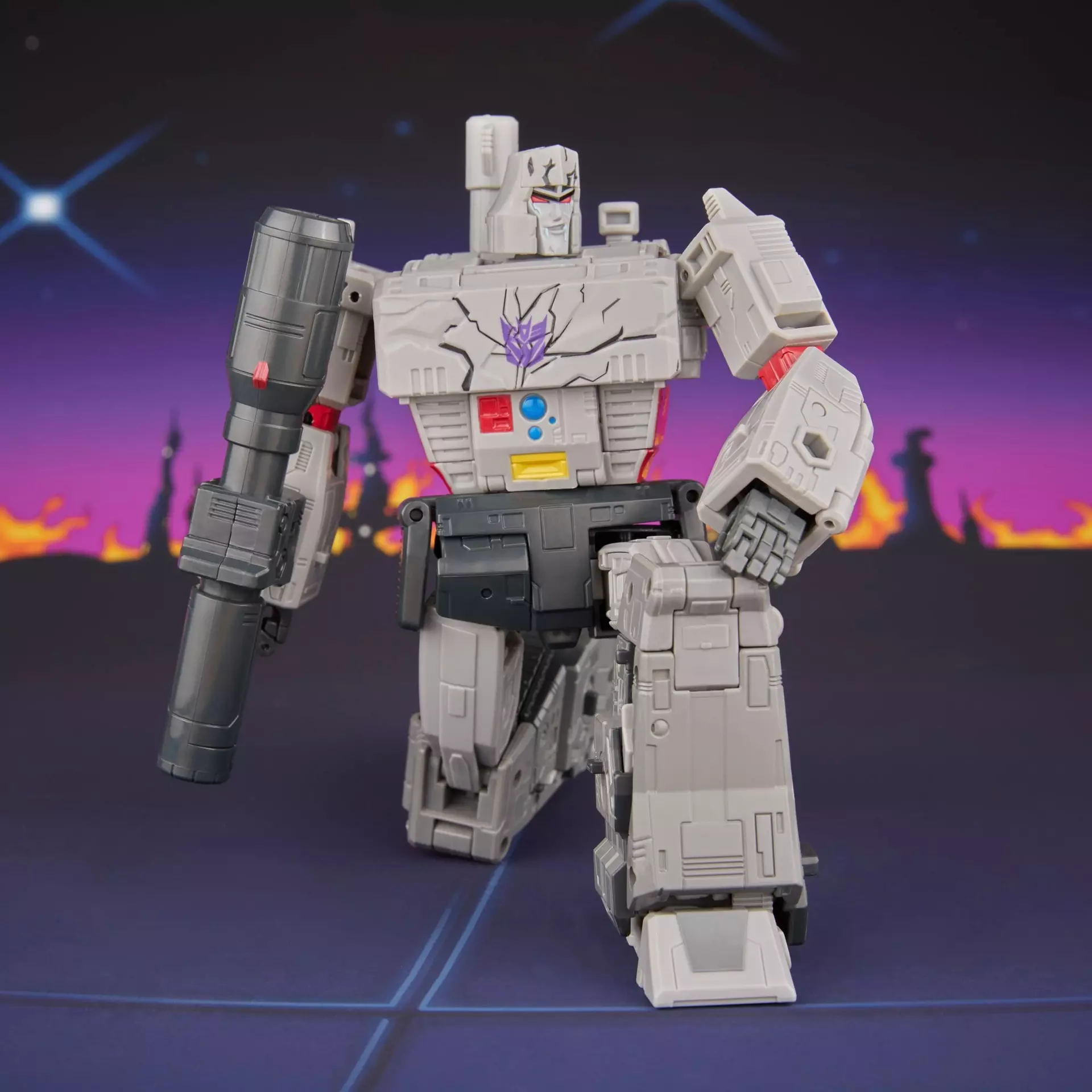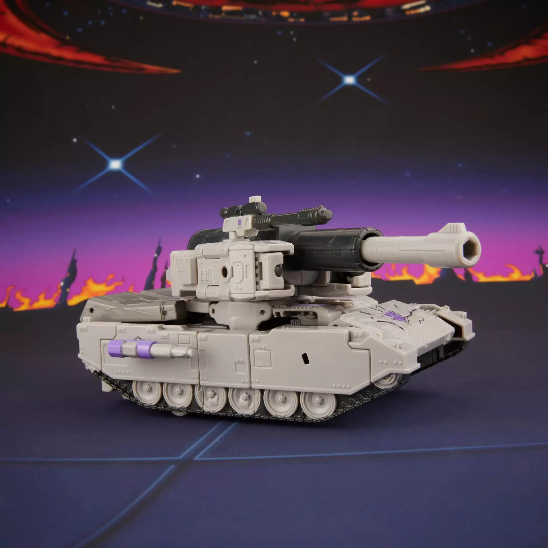 Deze Megatron Transformer komt uit de Transformers MTMTE collection van Hasbro en is een 21,5cm hoge leader class Transformer. Megatron veranderd in 54 stappen van robot naar tank en komt met zijn fusion cannon, twee blasters en beam saber accessoire.Het ontwerp van deze Megatron Studio Series is gebaseerd op zijn gevecht met Optimus Prime in Transformers: the Movie.